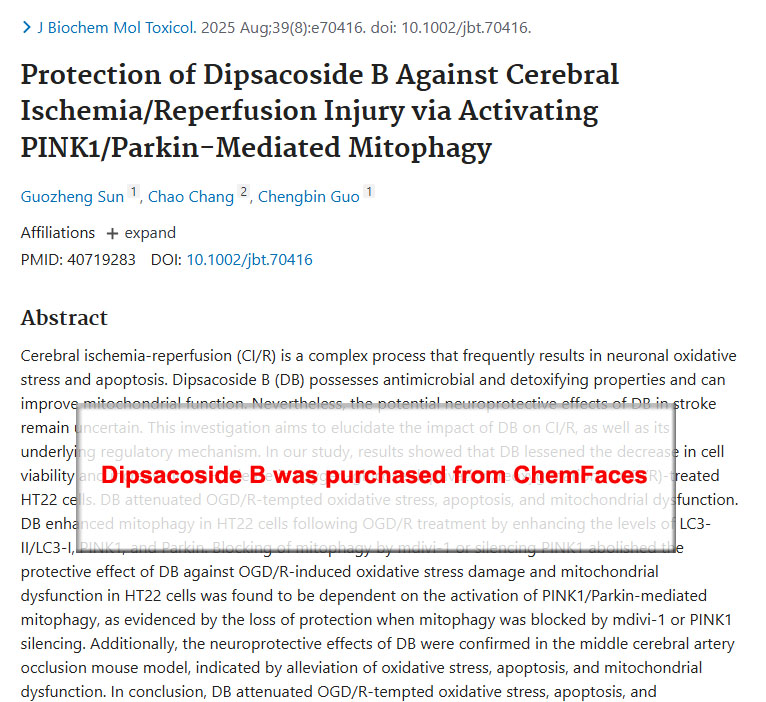 • Protection of Dipsacoside B Against Cerebral Ischemia/Reperfusion Injury via Activating PINK1/Parkinโ€Mediated Mitophagy