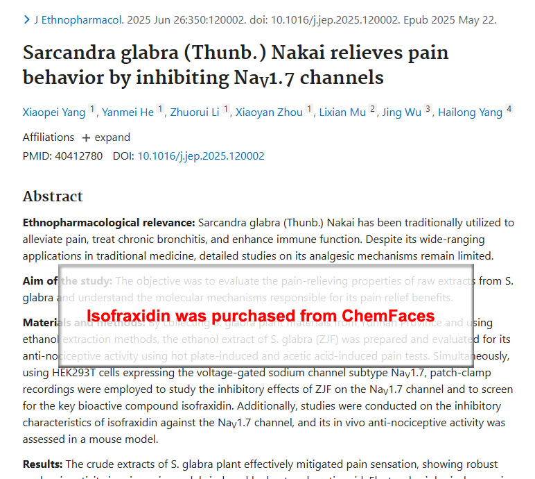 • Sarcandra glabra (Thunb.) Nakai relieves pain behavior by inhibiting NaV1. 7 channels