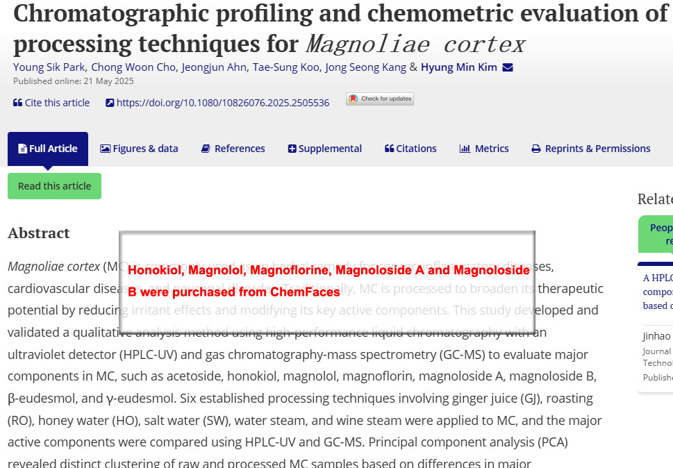 Honokiol, Magnolol, Magnoflorine, Magnoloside A and Magnoloside B were purchased from ChemFaces
