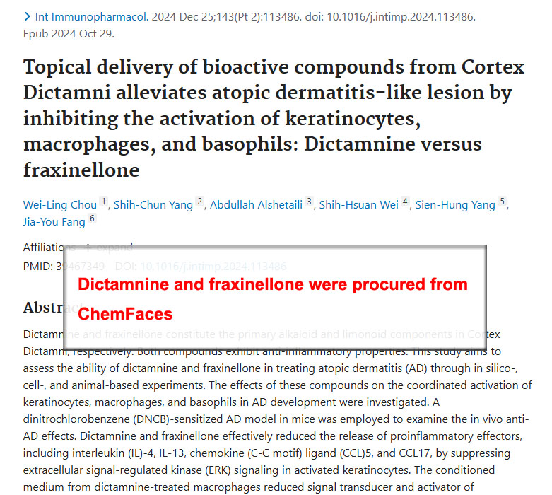 Dictamnine and Fraxinellone were procured from ChemFaces