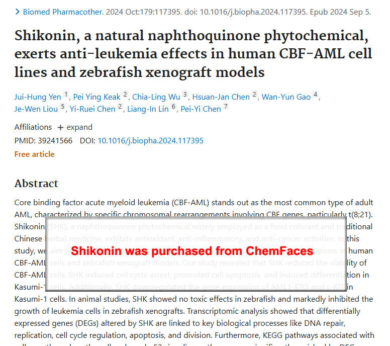 Shikonin, a natural naphthoquinone phytochemical, exerts anti-leukemia effects in human CBF-AML cell lines and zebrafish xenograft models