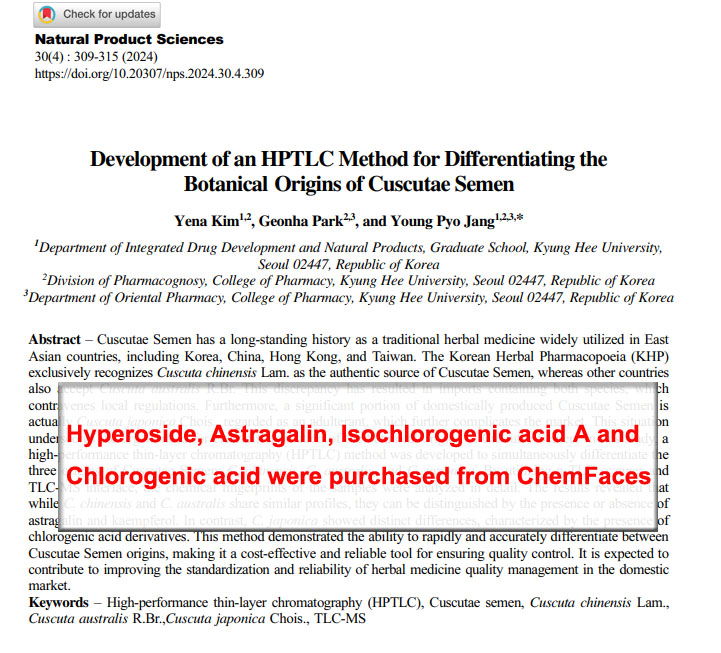 Hyperoside, Astragalin, Isochlorogenic acid A and Chlorogenic acid were purchased from ChemFaces