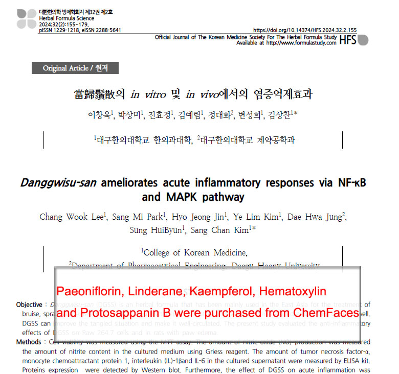 Danggwisu-san ameliorates acute inflammatory responses via NF-ฮบB and MAPK pathway