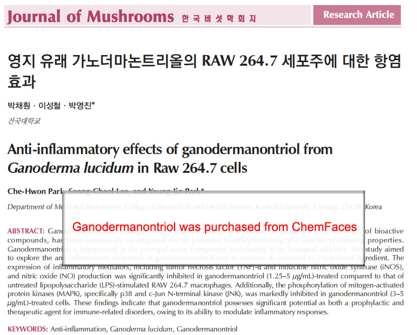Anti-inflammatory effects of ganodermanontriol from Ganoderma lucidum in Raw 264.7 cells