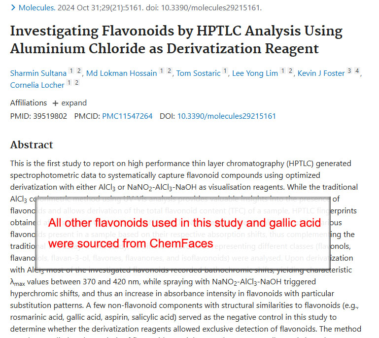 All other flavonoids used in this study and gallic acid were sourced from ChemFaces