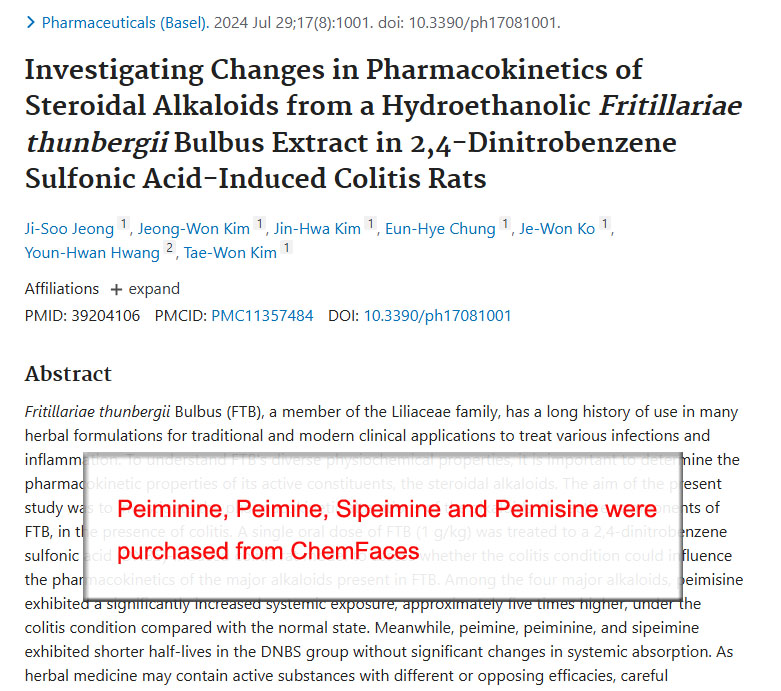 Peiminine, Peimine, Sipeimine and Peimisine were purchased from ChemFaces