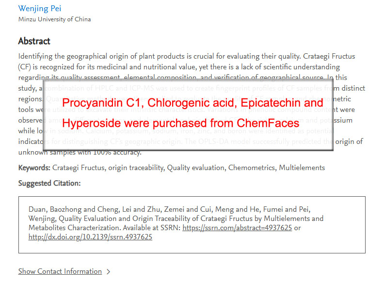 Procyanidin C1, Chlorogenic acid, Epicatechin and Hyperoside were purchased from ChemFaces