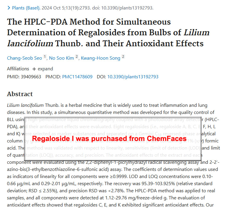 The HPLCโPDA Method for Simultaneous Determination of Regalosides from Bulbs of Lilium lancifolium Thunb. and Their Antioxidant Effects