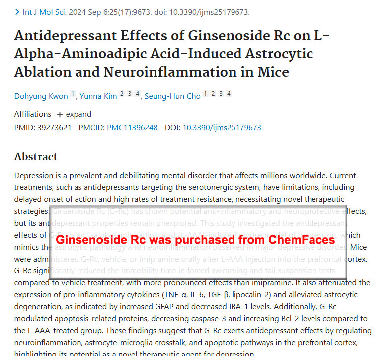 Antidepressant Effects of Ginsenoside Rc on L-Alpha-Aminoadipic Acid-Induced Astrocytic Ablation and Neuroinflammation in Mice