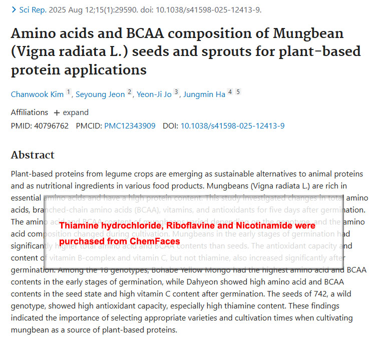 Thiamine hydrochloride, Riboflavine and Nicotinamide were purchased from ChemFaces