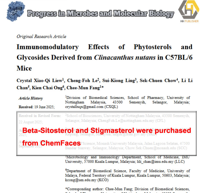 Beta-Sitosterol and Stigmasterol were purchased from ChemFaces
