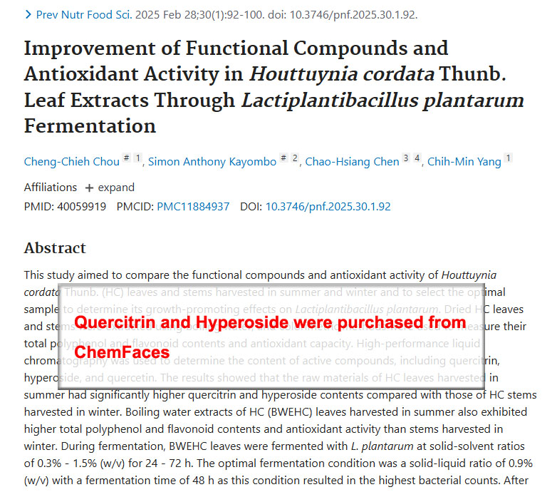 Quercitrin and Hyperoside were purchased from ChemFaces