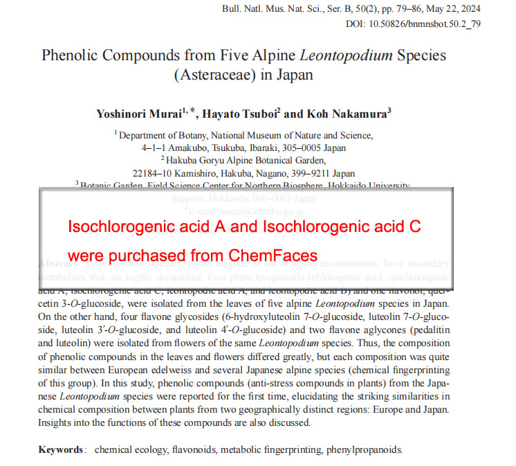 Isochlorogenic acid A and Isochlorogenic acid C were purchased from ChemFaces