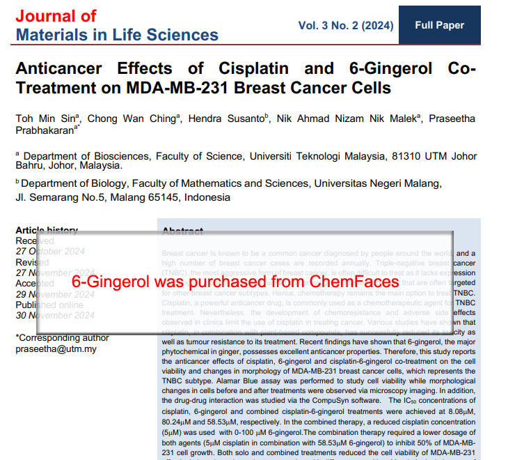 Anticancer Effects of Cisplatin and 6-Gingerol Co-Treatment on MDA-MB-231 Breast Cancer Cells