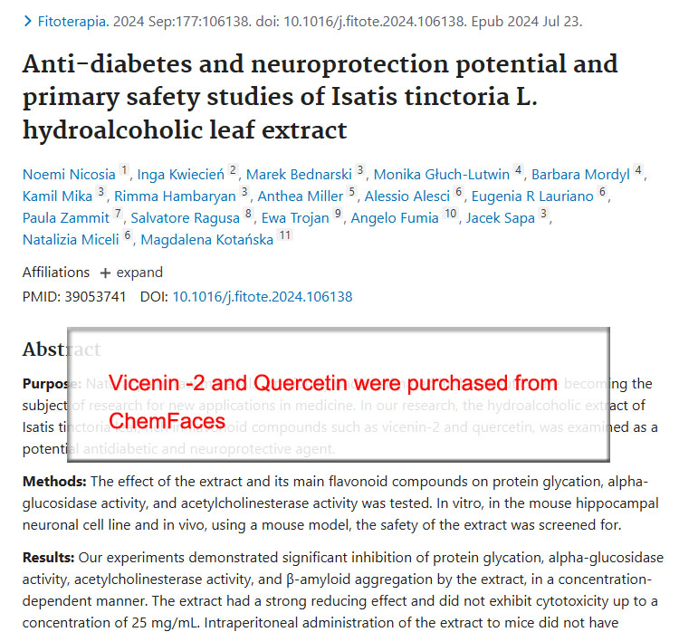 Vicenin -2 and Quercetin were purchased from ChemFaces