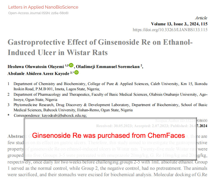 Gastroprotective Effect of Ginsenoside Re on Ethanol-Induced Ulcer in Wistar Rats