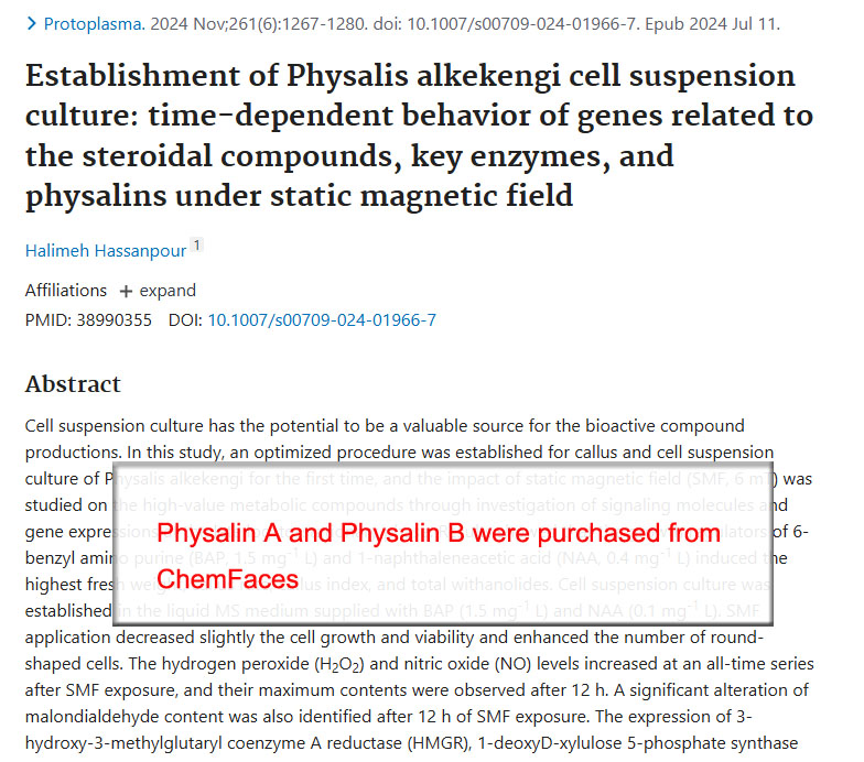 Establishment of Physalis alkekengi cell suspension culture: time-dependent behavior of genes related to the steroidal compounds, key enzymes, and physalins under static magnetic field