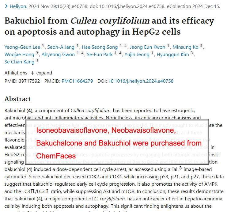 Isoneobavaisoflavone, Neobavaisoflavone, Bakuchalcone and Bakuchiol were purchased from ChemFaces