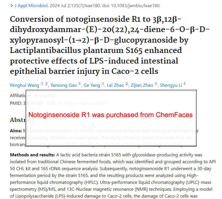Conversion of notoginsenoside R1 to 3ホイ,12ホイ-dihydroxydammar-(E)-20(22),24-diene-6-O-ホイ-D-xylopyranosyl-(1->2)-ホイ-D-glucopyranoside by Lactiplantibacillus plantarum S165 enhanced protective effects of LPS-induced intestinal epithelial barrier injury in Caco-2 cells
