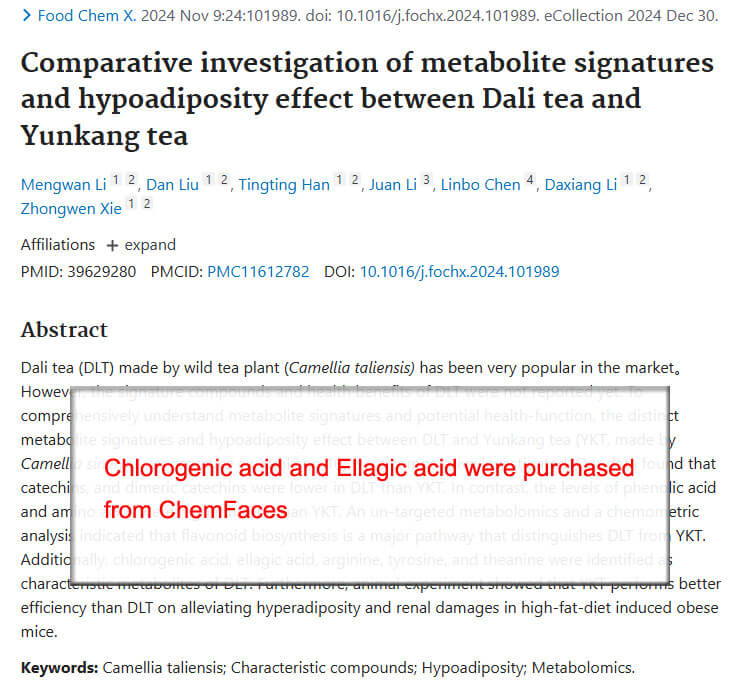 Chlorogenic acid and Ellagic acid were purchased from ChemFaces