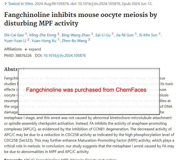Fangchinoline inhibits mouse oocyte meiosis by disturbing MPF activity