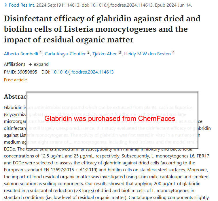 Disinfectant efficacy of glabridin against dried and biofilm cells of Listeria monocytogenes and the impact of residual organic matter