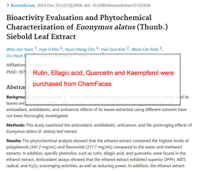 Rutin, Ellagic acid, Quercetin and Kaempferol were purchased from ChemFaces