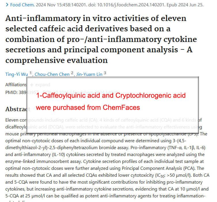 1-Caffeoylquinic acid and Cryptochlorogenic acid were purchased from ChemFaces