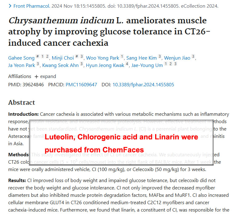 Luteolin, Chlorogenic acid and Linarin were purchased from ChemFaces