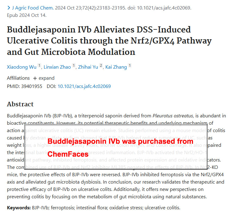 Buddlejasaponin IVb Alleviates DSS-Induced Ulcerative Colitis through the Nrf2/GPX4 Pathway and Gut Microbiota Modulation