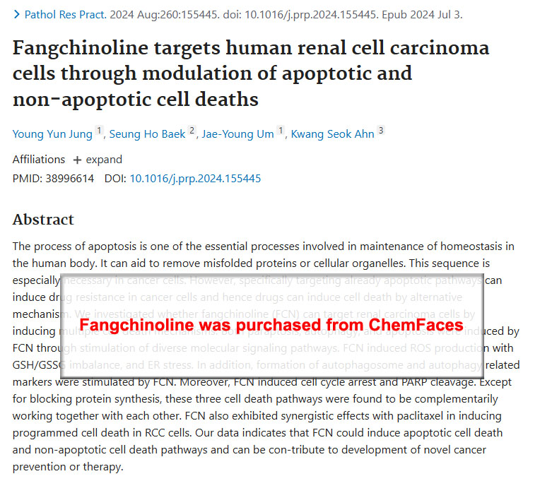 Fangchinoline targets human renal cell carcinoma cells through modulation of apoptotic and non‑apoptotic cell deaths
