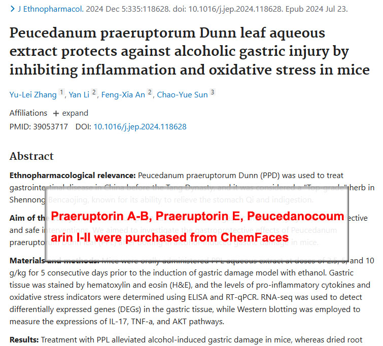 Praeruptorin A-B, Praeruptorin E, Peucedanocoumarin I-II were purchased from ChemFaces